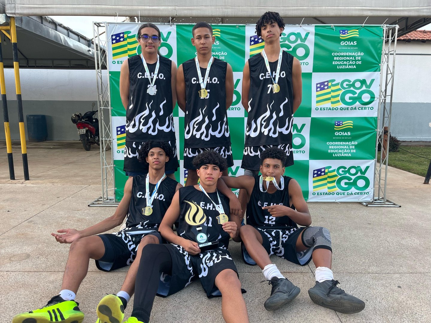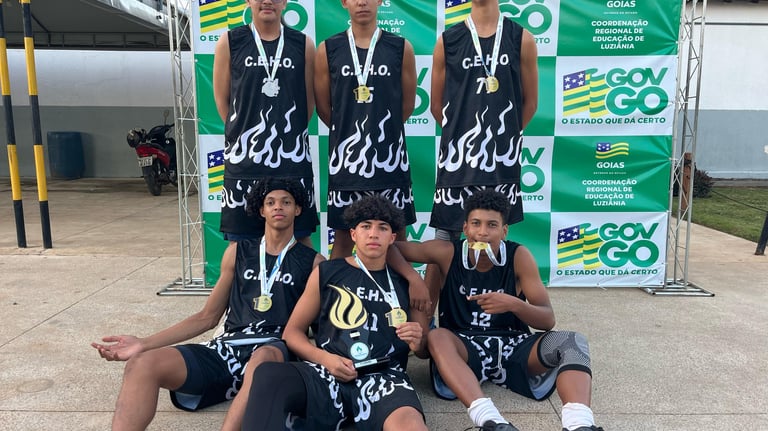 Os atletas Alex Santana, Iago Alves, Joabe Miguel, João Antenor, Leonardo Vinicius e Samuel Ferreira, do Colégio Estadual Hélio Roriz (Jardim Ingá), vão representar a cidade de Luziânia na fase regional dos jogos estudantis 2025, na modalidade de basquete.